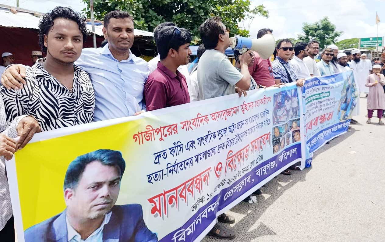 সাংবাদিক তুহিন হত্যার প্রতিবাদে মানববন্ধন, খুনিদের ফাঁসির দাবি