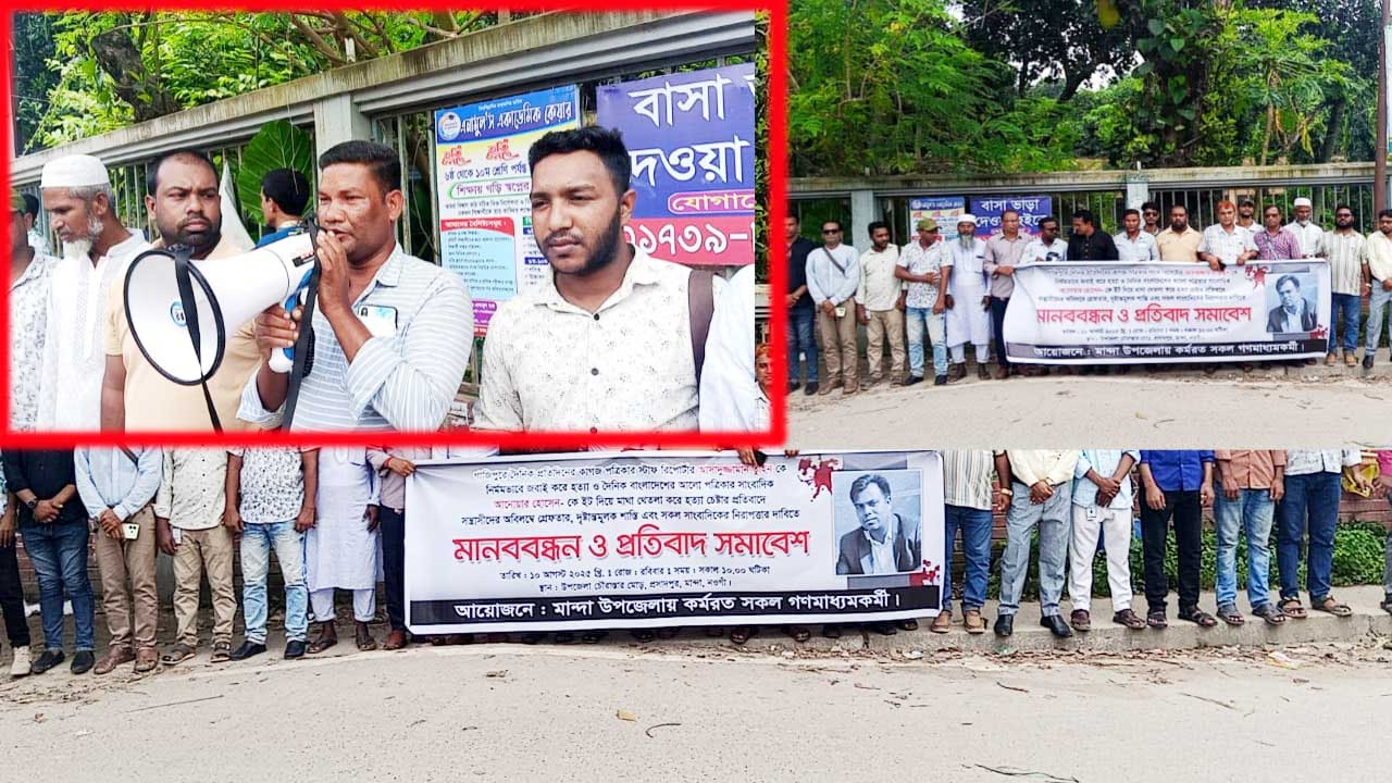 সাংবাদিক তুহিন হত্যার বিচারের দাবীতে মান্দায় মানববন্ধন