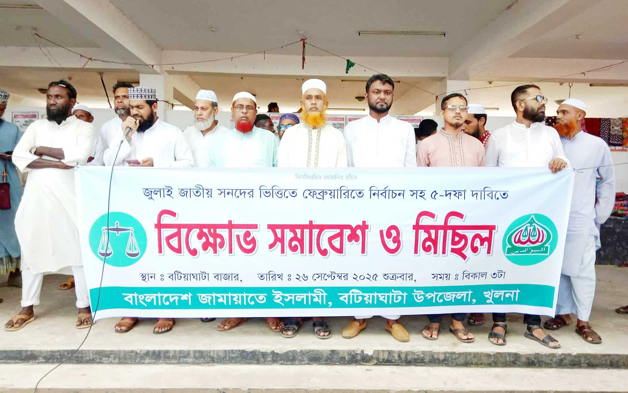 বটিয়াঘাটায় জামায়াতের ৫ দফা দাবিতে বিক্ষোভ মিছিল