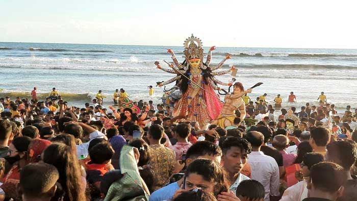সাগররে র্গজন, ভক্তদরে স্রোত আর বৃষ্টরি ছোঁয়ায় এবাররে প্রতমিা বর্সিজন হয়ে উঠছেলি ভ্রাতৃত্ব ও সম্প্রীতরি অনন্য উৎসব। কক্সবাজাররে সকৈত যনে সাময়কি সময়রে জন্য হয়ে উঠছেলি র্ধম-র্বণ-সম্প্রদায় নর্বিশিষেে মানুষরে মলিনক্ষত্রে।
