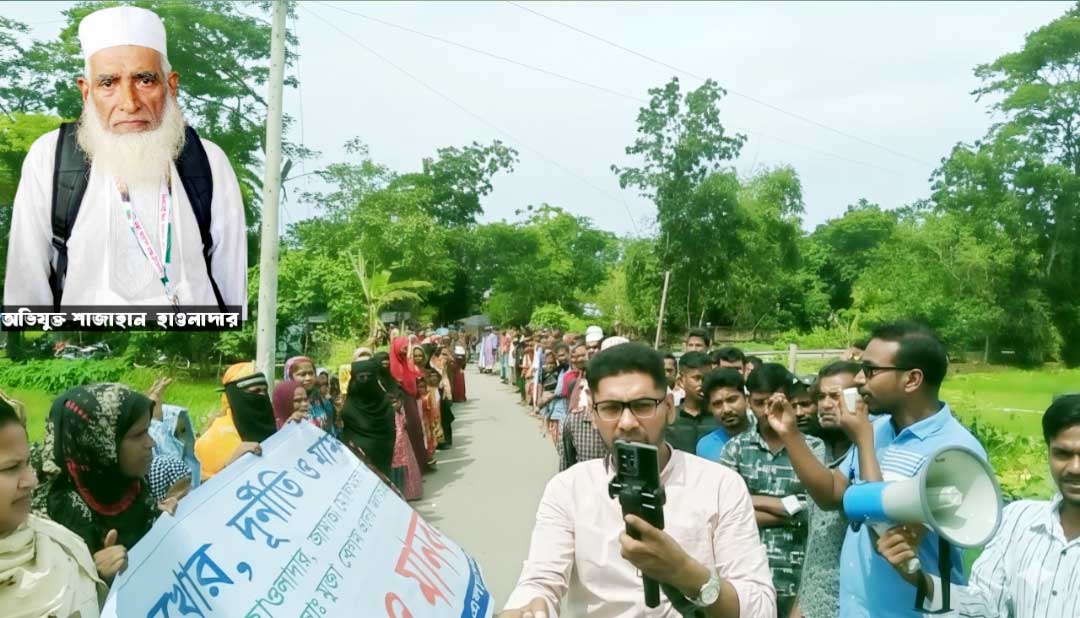 বাউফলে সুদ কারবারি পরিবারের বিরুদ্ধে গ্রামবাসীর মানববন্ধন