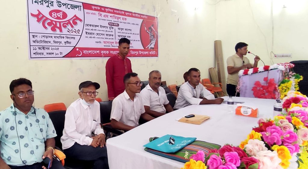 কৃষক ও কৃষির সমস্যাই মূলত জাতীয় সমস্যা**”—এই স্লোগানকে সামনে রেখে বাংলাদেশ কৃষক সংগ্রাম সমিতি, মিরপুর উপজেলা কমিটির উদ্যোগে এক কৃষক সম্মেলন ও উপজেলা কমিটির ৪র্থ সম্মেলন অনুষ্ঠিত হয়েছে।