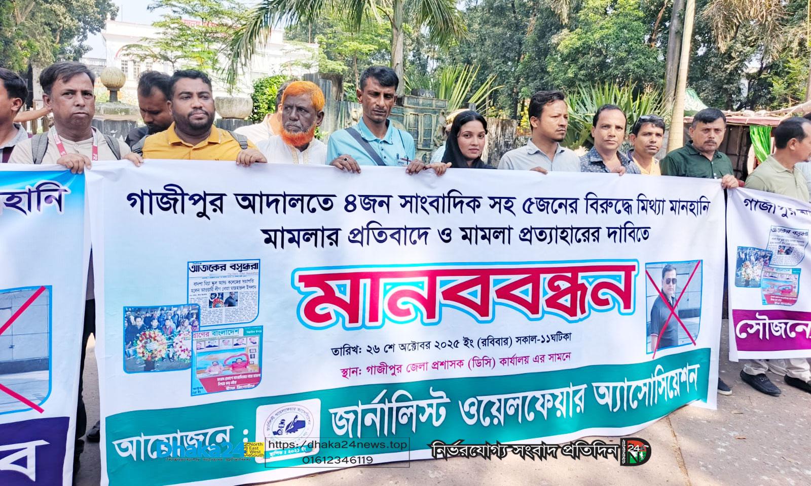 সম্পাদকসহ ৫ সাংবাদিকের বিরুদ্ধে মিথ্যা মামলার প্রতিবাদে গাজীপুরে মানববন্ধন