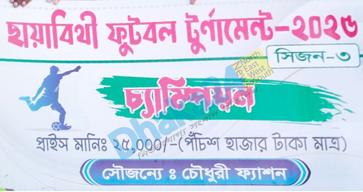 ঢাকার সাভারের ছায়াবিথী এলাকায় উৎসবমুখর পরিবেশে অনুষ্ঠিত হয়েছে ফুটবল টুর্নামেন্টের ফাইনাল খেলা। টুর্নামেন্টে মোট ১২টি দল অংশ নেয়। উত্তেজনাপূর্ণ প্রতিযোগিতার মধ্য দিয়ে ফাইনালে জায়গা করে নেয় হাসান টাঙ্গাইল এক্সপ্রেস ও রায়হান একাদশ।