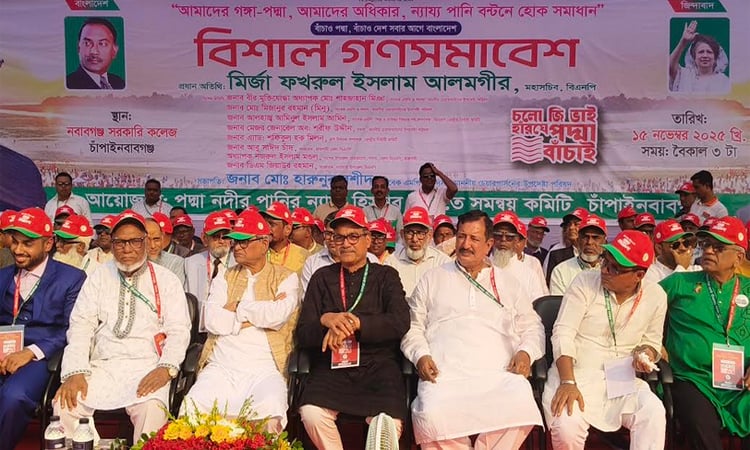 বিএনপি মহাসচিব মির্জা ফখরুল ইসলাম আলমগীর বলেছেন, গঙ্গা ও পদ্মা নদীর ন্যায্য পানির অধিকার আদায় না হওয়া পর্যন্ত দলের আন্দোলন চলবে। তিনি বলেন, এ পানি শুধু নদীর জন্য নয়, দেশের কৃষি, পরিবেশ ও কোটি মানুষের জীবিকার সঙ্গে সরাসরি জড়িত। তাই ন্যায্য পানি না পাওয়া জাতীয় অস্তিত্বের প্রশ্ন।