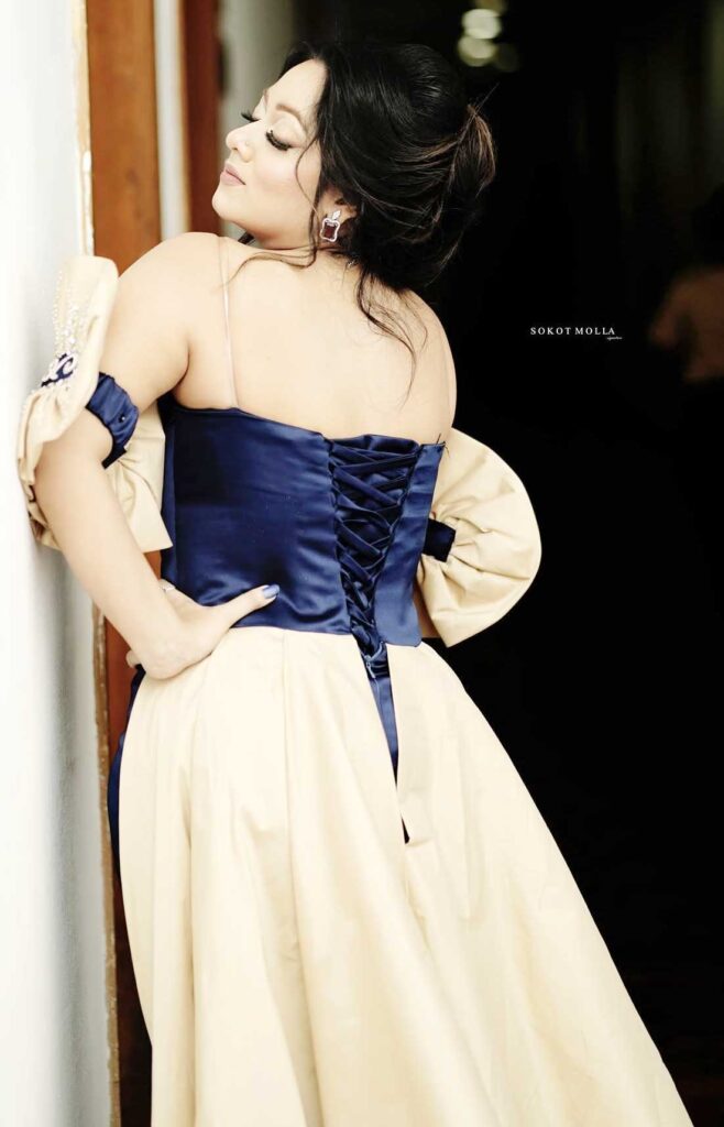 এদিকে পর্দার বাইরে সামাজিক মাধ্যমে সরব থাকেন দীঘি। বিভিন্ন সাজে নিজেকে উপস্থাপন করেন এবং ভক্তদের সামনে নিয়মিতই ধরা দেন এই অভিনেত্রী। তারই ধারায় শুক্রবার সন্ধ্যায় সামাজিক মাধ্যমে একাধিক ছবি প্রকাশ করলেন। তাতে দেখা যায়, একটি নীল-সোনালী গাউন পরেছেন দীঘি। তবে আগের তুলনায় দীঘি এবারের উপস্থিতি ছিল অনেকটা সাহসী। এ সময় খানিকটা খোলামেলা অবস্থায় দেখা যায় তাকে। দীঘির এই মোহনীয়-আবেদনময়ী লুক যে রীতিমতো মুগ্ধতা ছড়িয়েছে ভক্তদের মাঝে, তা আর বলার বাকি রাখে না।