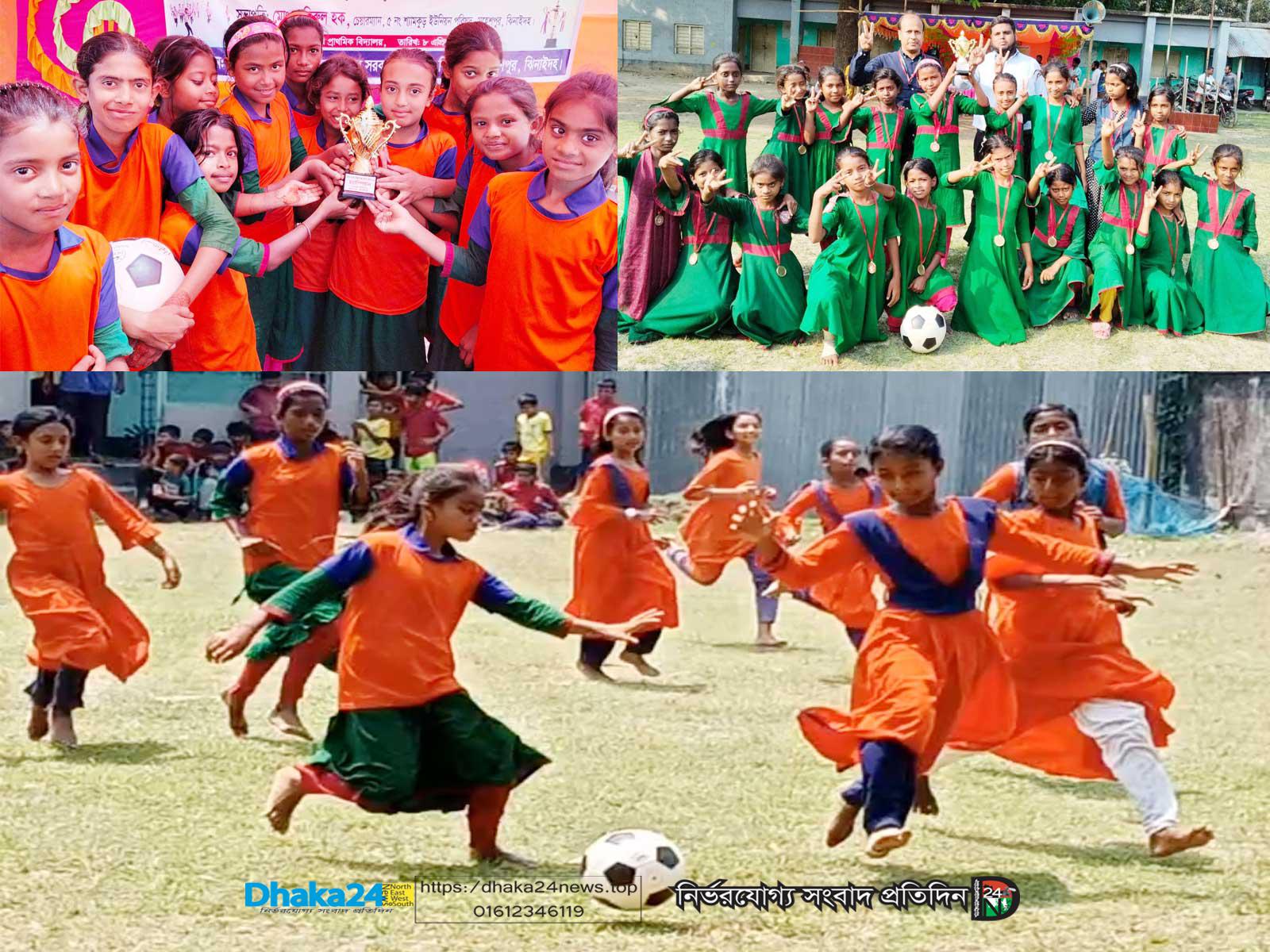 ছোট বালিকারা গুটিগুটি পায়ে বল নিয়ে এগোচ্ছে তাদের কাঙ্খিত লক্ষের দিকে, উদ্দেশ্য একটাই—অপরপক্ষকে গোল দিয়ে পরাজিত করে নিজ বিদ্যালয়ের বিজয় ছিনিয়ে আনা। এমনই চিত্র দেখা গেছে আজ বুধবার সকালে ঝিনাইদহের মহেশপুর উপজেলার ৫নং শ্যামকুড় ইউনিয়নের শ্যামকুড় সরকারি প্রাথমিক বিদ্যালয় মাঠে।