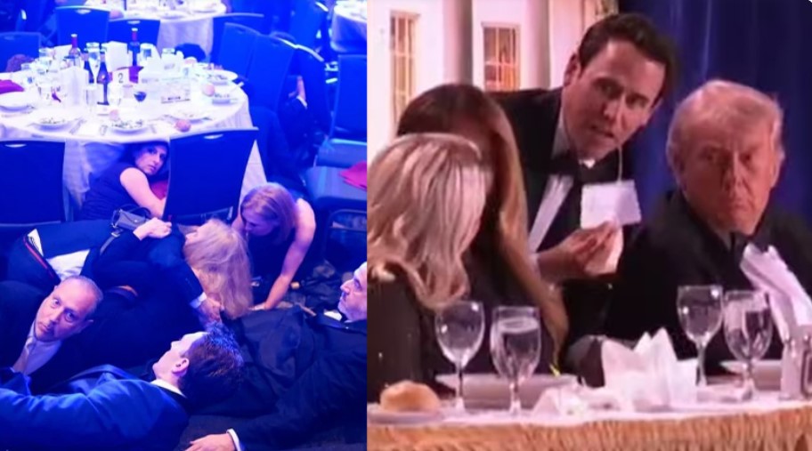 ট্যাপার আরও জানান, নিরাপত্তার দায়িত্বে থাকা একজন কর্মকর্তা সেখানে উপস্থিত অন্যদের জানান যে ভবনের ভেতরেই একজন বন্দুকধারী রয়েছে। এছাড়া যুক্তরাষ্ট্রের স্বাস্থ্য ও মানবসেবা বিভাগের প্রধান রবার্ট এফ কেনেডি এবং অর্থমন্ত্রী স্কট বেসেন্টসহ প্রশাসনের অন্যান্য সদস্যদেরও দ্রুত নিরাপদ স্থানে সরিয়ে নেয়া হয় বলে তিনি উল্লেখ করেন। সিএনএনের খবরে বলা হয়, গুলির শব্দ শোনার পরপরই প্রেসিডেন্ট ডোনাল্ড ট্রাম্প আত্মরক্ষার জন্য মাথা নিচু করেন, এরপর নিরাপত্তা বাহিনী চারদিক থেকে তাকে ঘিরে ফেলে। কিছুক্ষণের মধ্যেই দ্রুত ঘটনাস্থল থেকে সরিয়ে নেয়া হয় তাকে। প্রতিবেদনে বলা হয়, এমন ঘটনায় হতবাক হয়ে যান ট্রাম্প। ফার্স্ট লেডি মেলানিয়া ট্রাম্পের মুখেও বিস্ময় ফুটে ওঠে। এ সময় সিবিএস নিউজের হোয়াইট হাউস করেসপন্ডেন্ট উইজা ওয়াং তার আসন থেকে লাফিয়ে ওঠেন। ওই সময় সেখানে মার্কিন ভাইস প্রেসিডেন্ট জেডি ভ্যান্সও উপস্থিত ছিলেন।